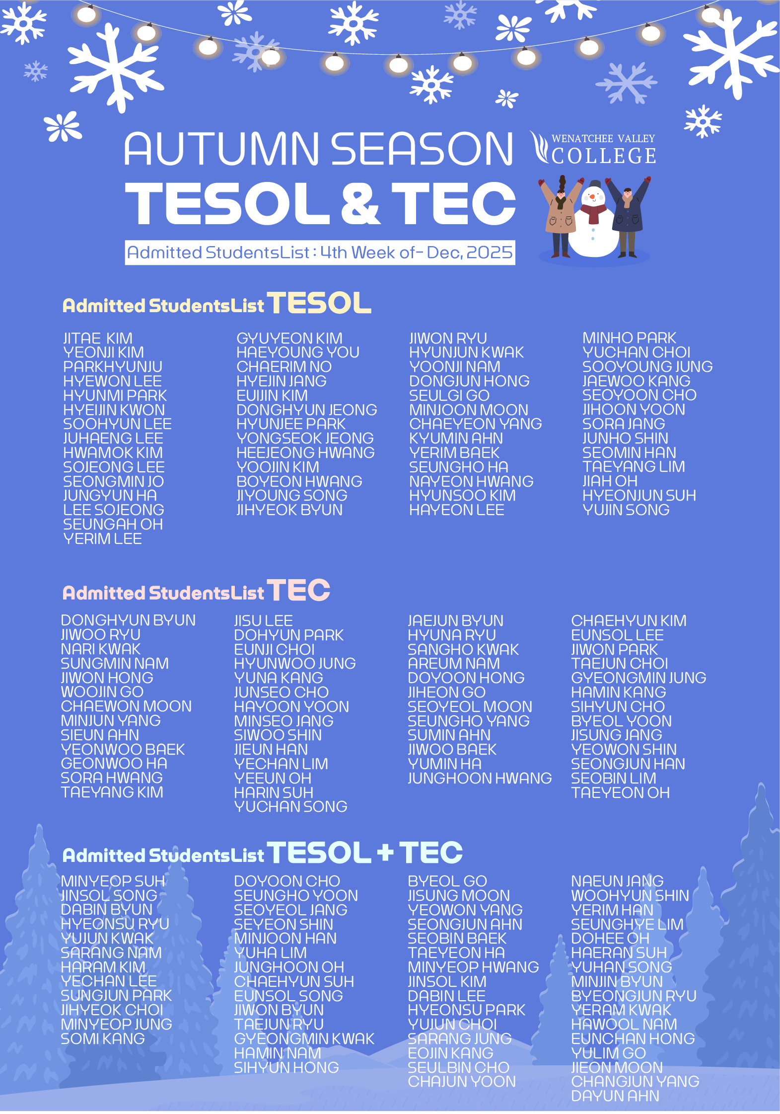 [입학생 리스트] 2025년 12월 2주 WVC TESOL & TEC