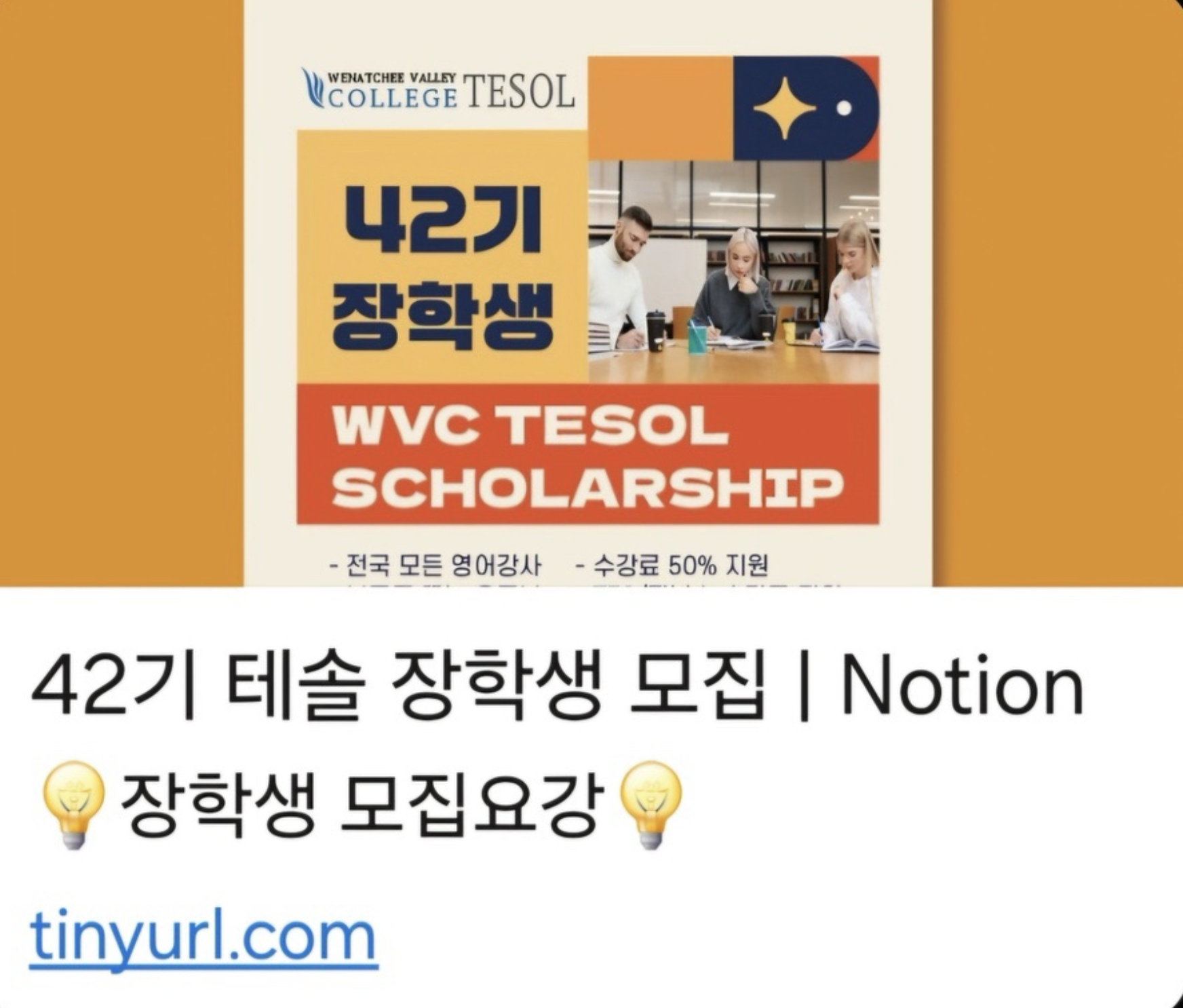 1. 테솔 취득 장학금 65만원 지원