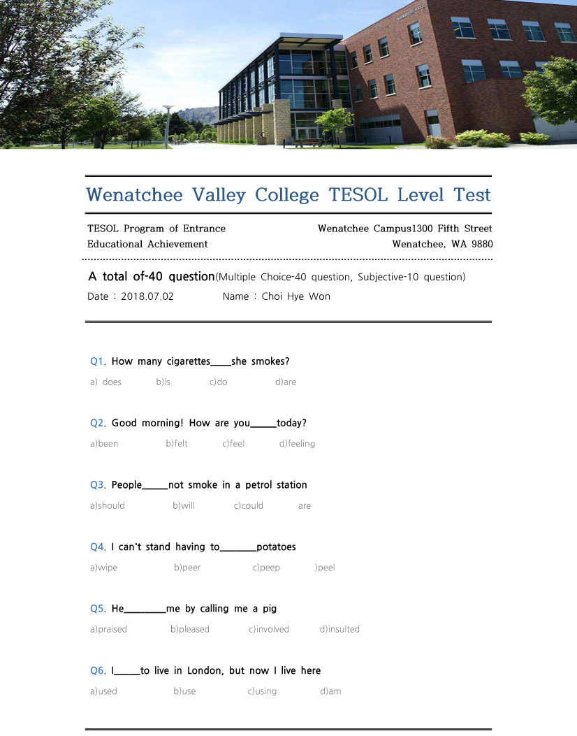 미국 국공립 대학교 WVC TESOL 무료 레벨테스트 진행 |