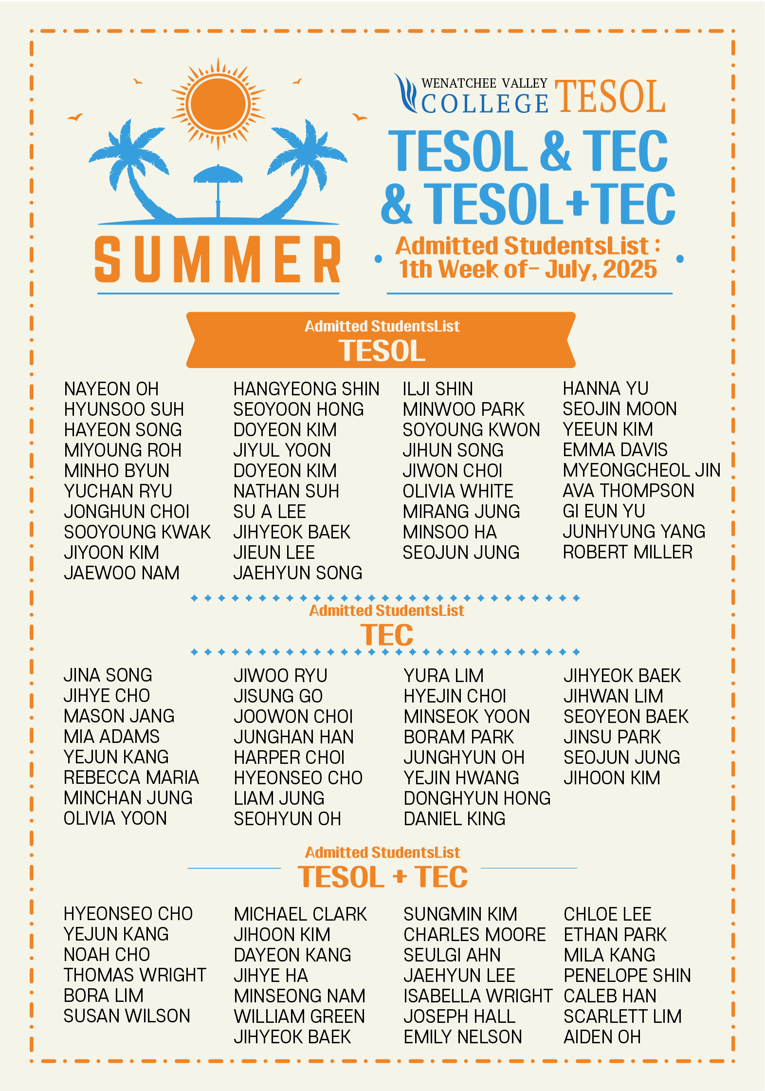 [입학생 리스트] 2025년 7월 1주 WVC TESOL & TEC |