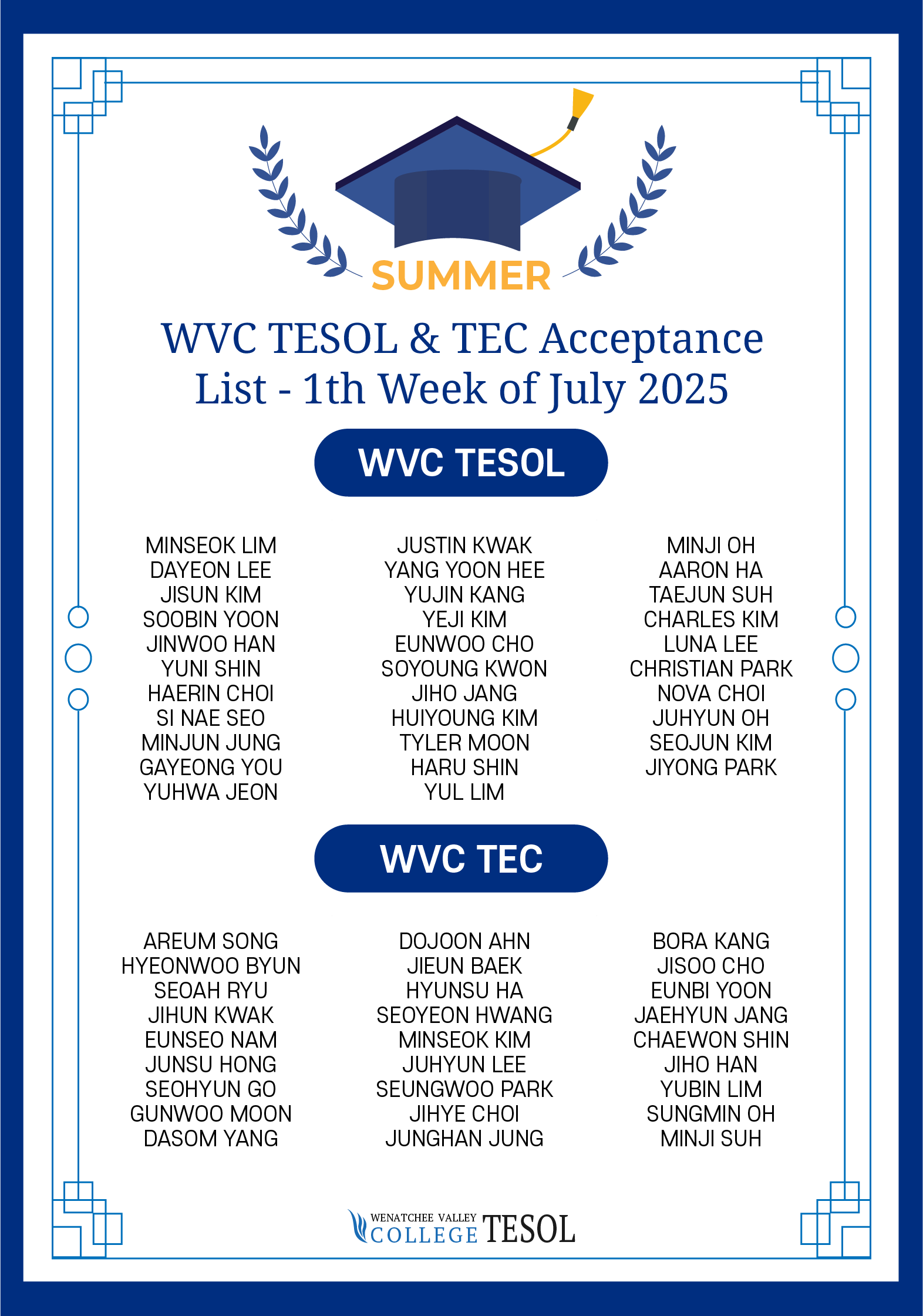 [합격생 리스트] 2025년 7월 1주 WVC TESOL & TEC |