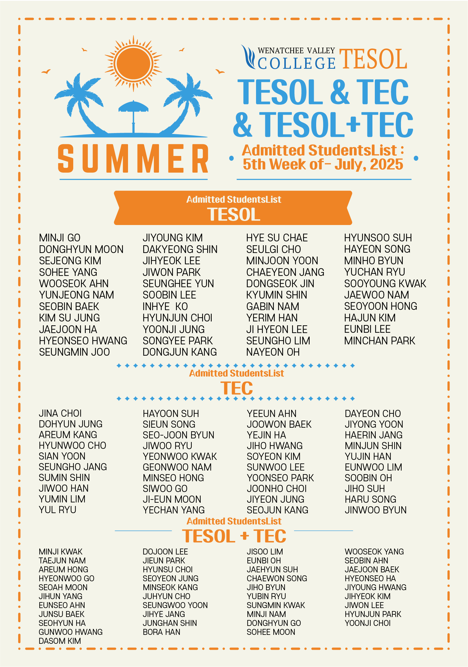 [입학생 리스트] 2025년 7월 5주 WVC TESOL & TEC |