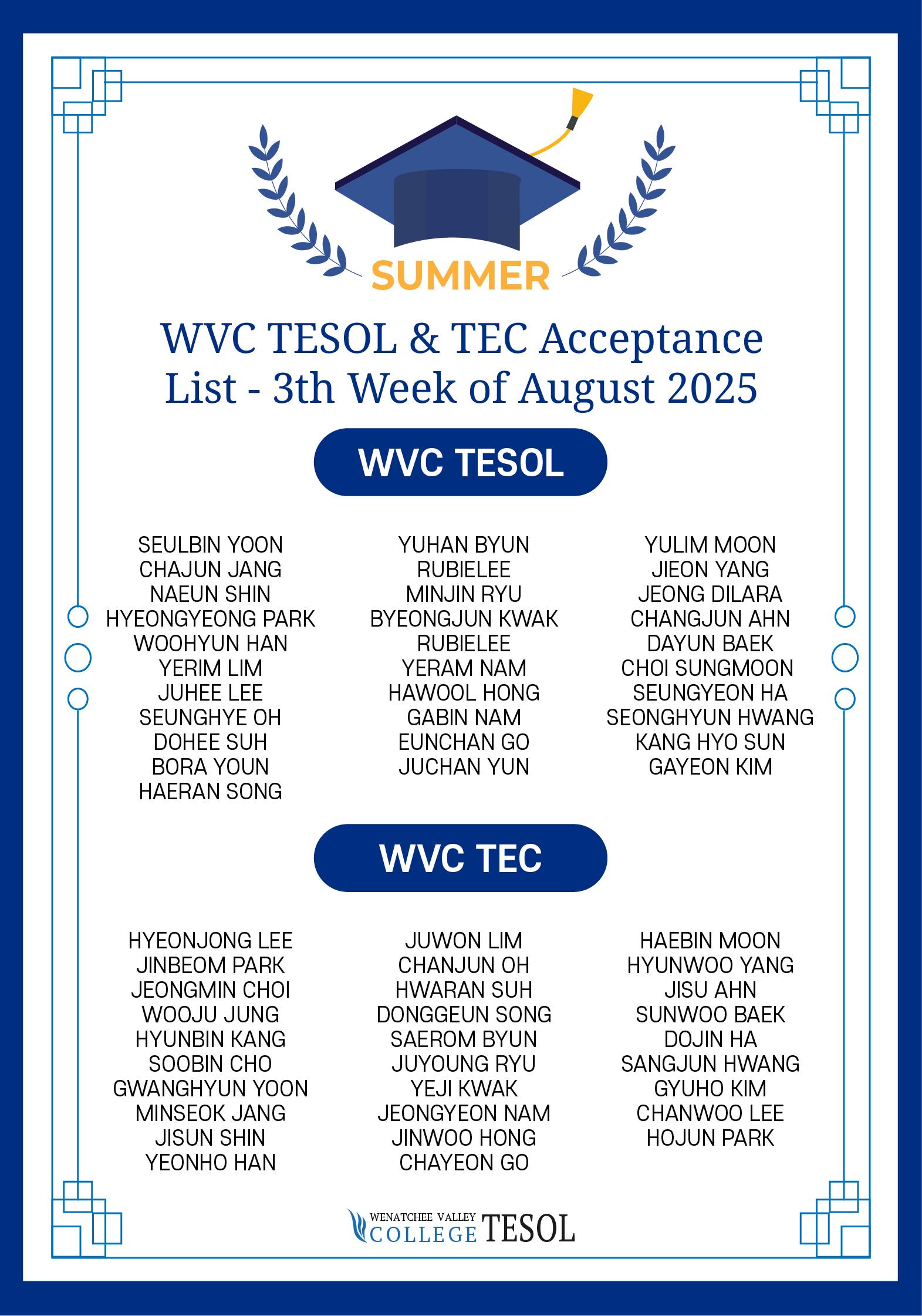 [합격생 리스트] 2025년 8월 3주 WVC TESOL & TEC |