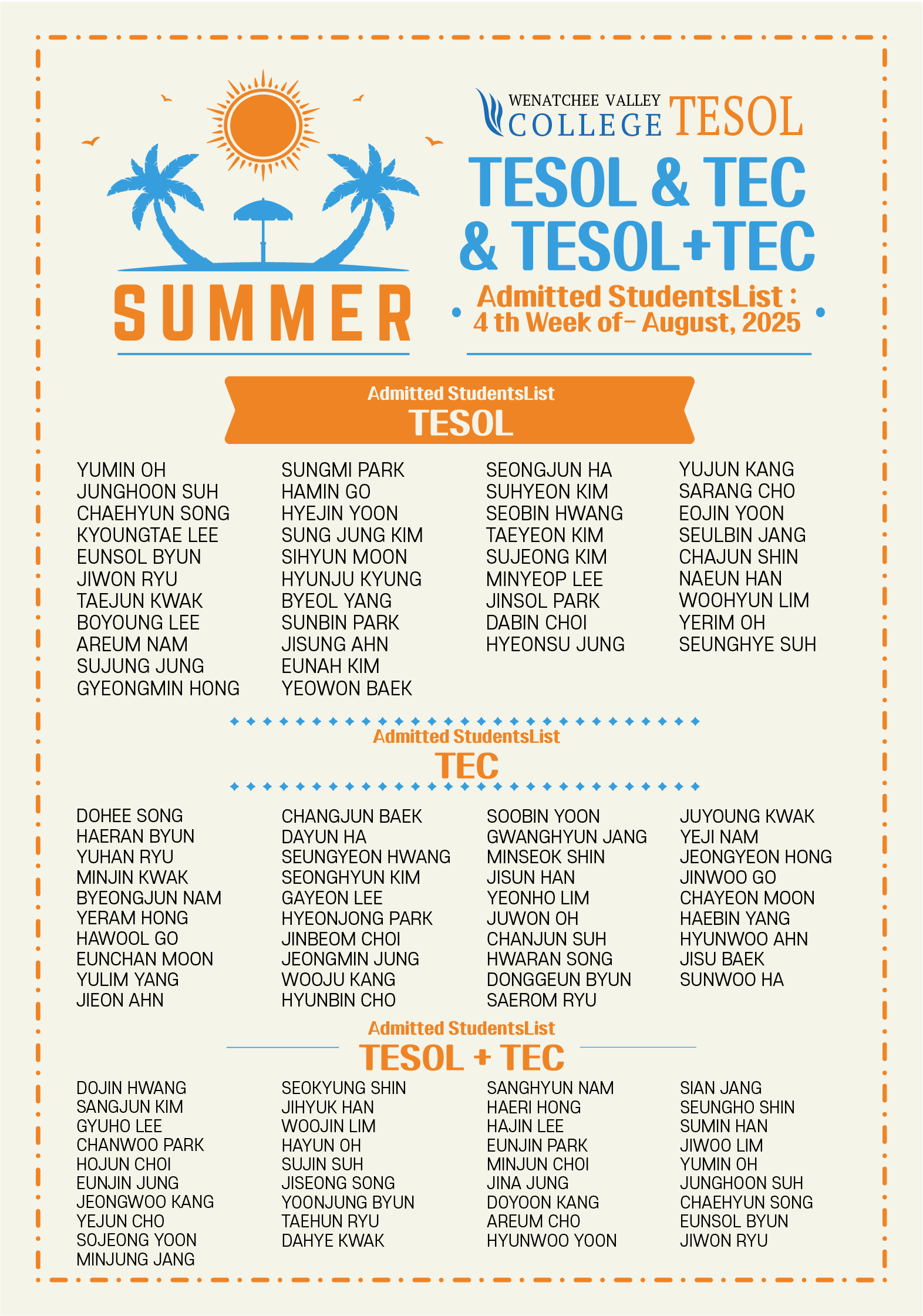 [입학생 리스트] 2025년 8월 4주 WVC TESOL & TEC |