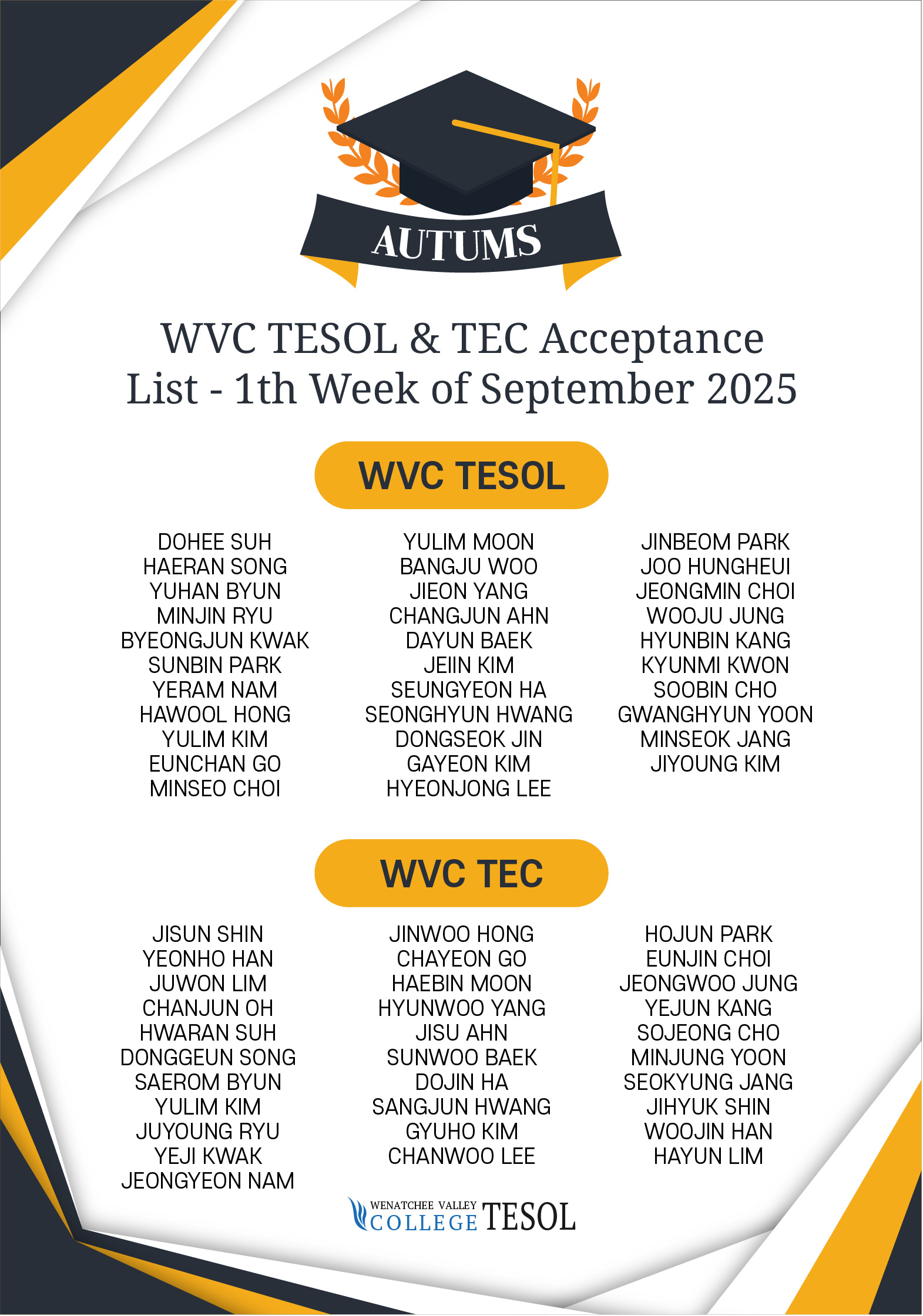 [합격생 리스트] 2025년 9월 1주 WVC TESOL & TEC |