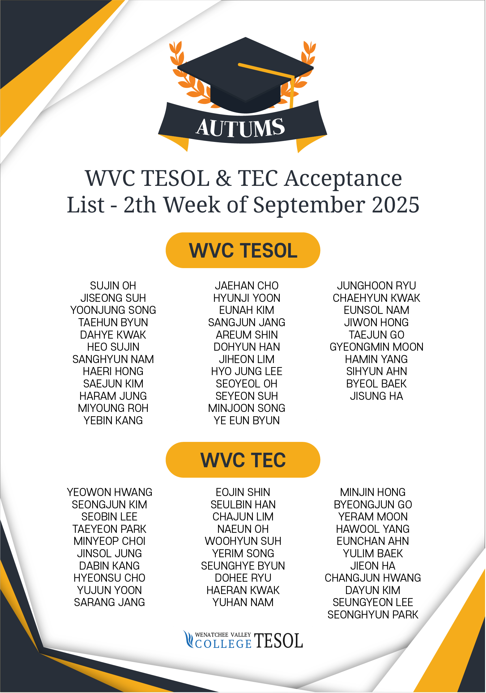 [합격생 리스트] 2025년 9월 2주 WVC TESOL & TEC |