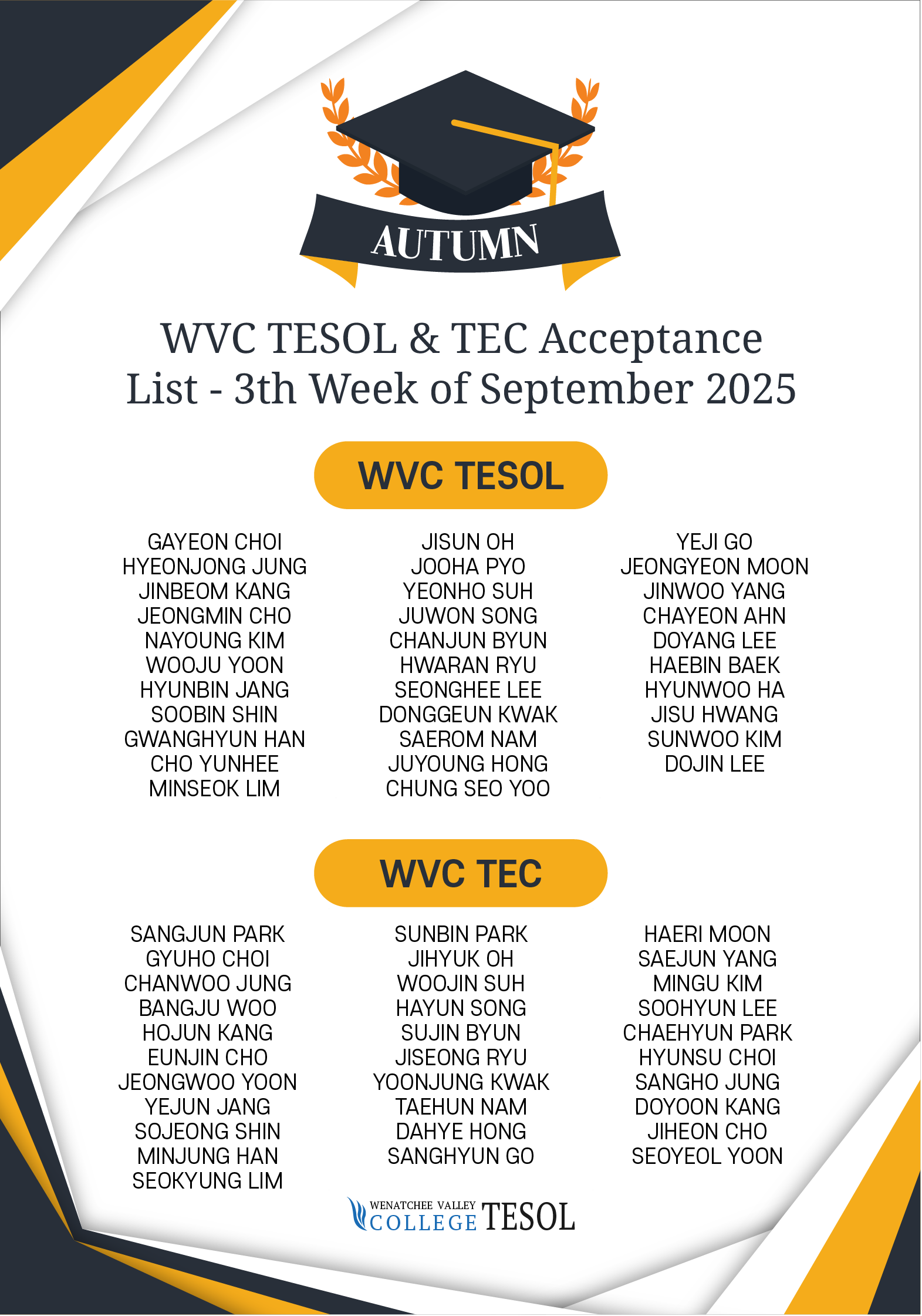 [합격생 리스트] 2025년 9월 3주 WVC TESOL & TEC |