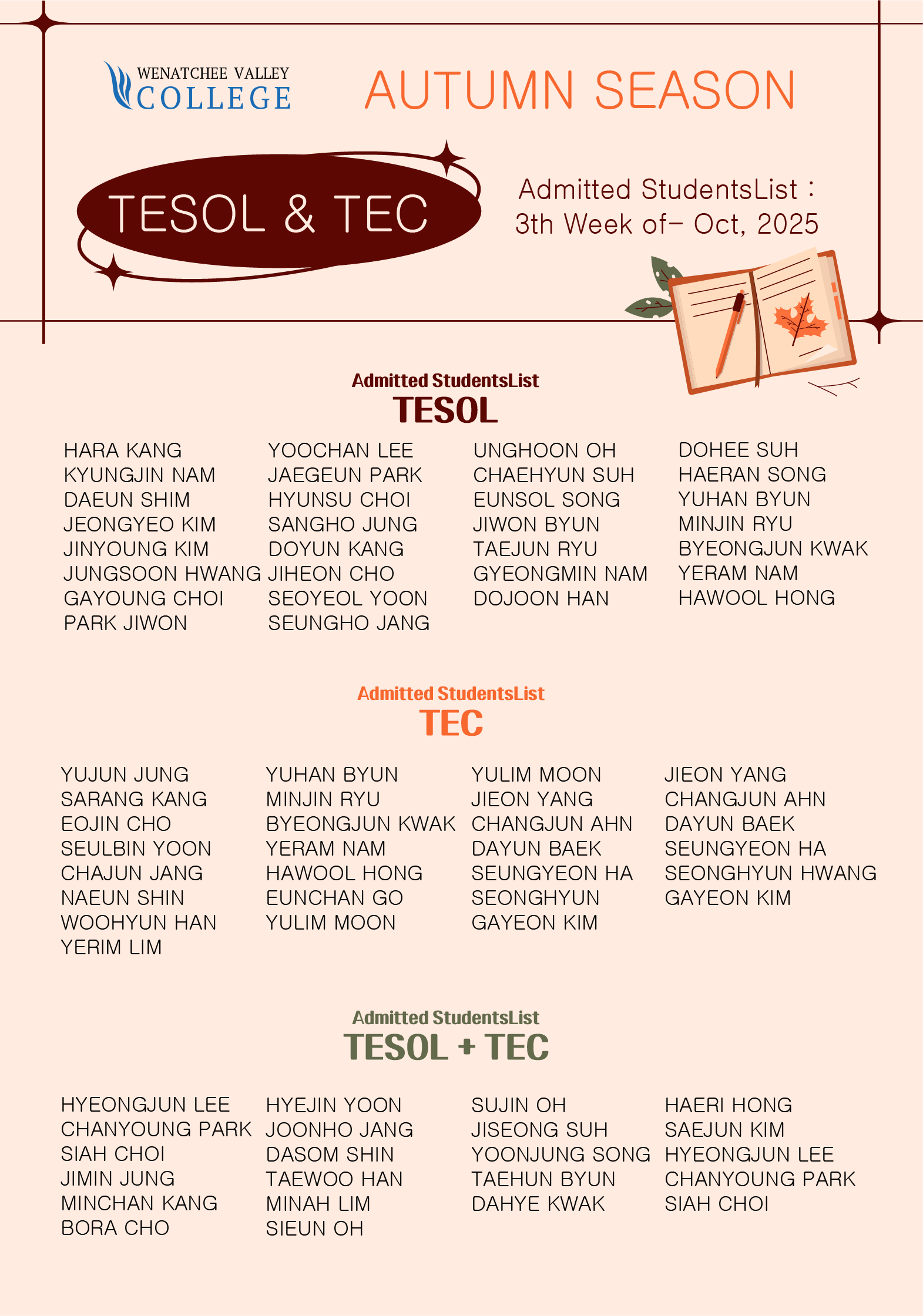 [입학생 리스트] 2025년 10월 3주 WVC TESOL & TEC |