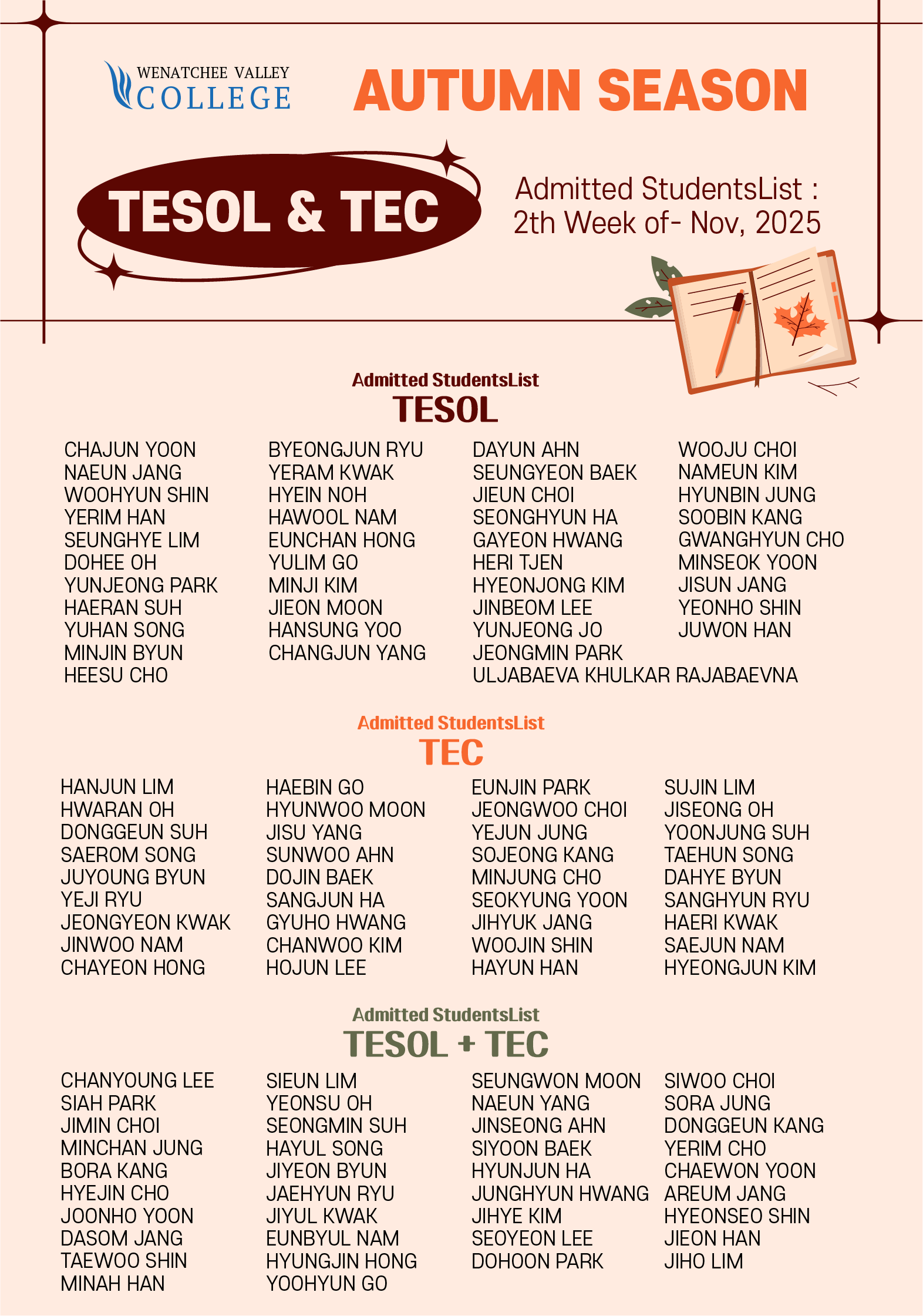[입학생 리스트] 2025년 11월 2주 WVC TESOL & TEC |