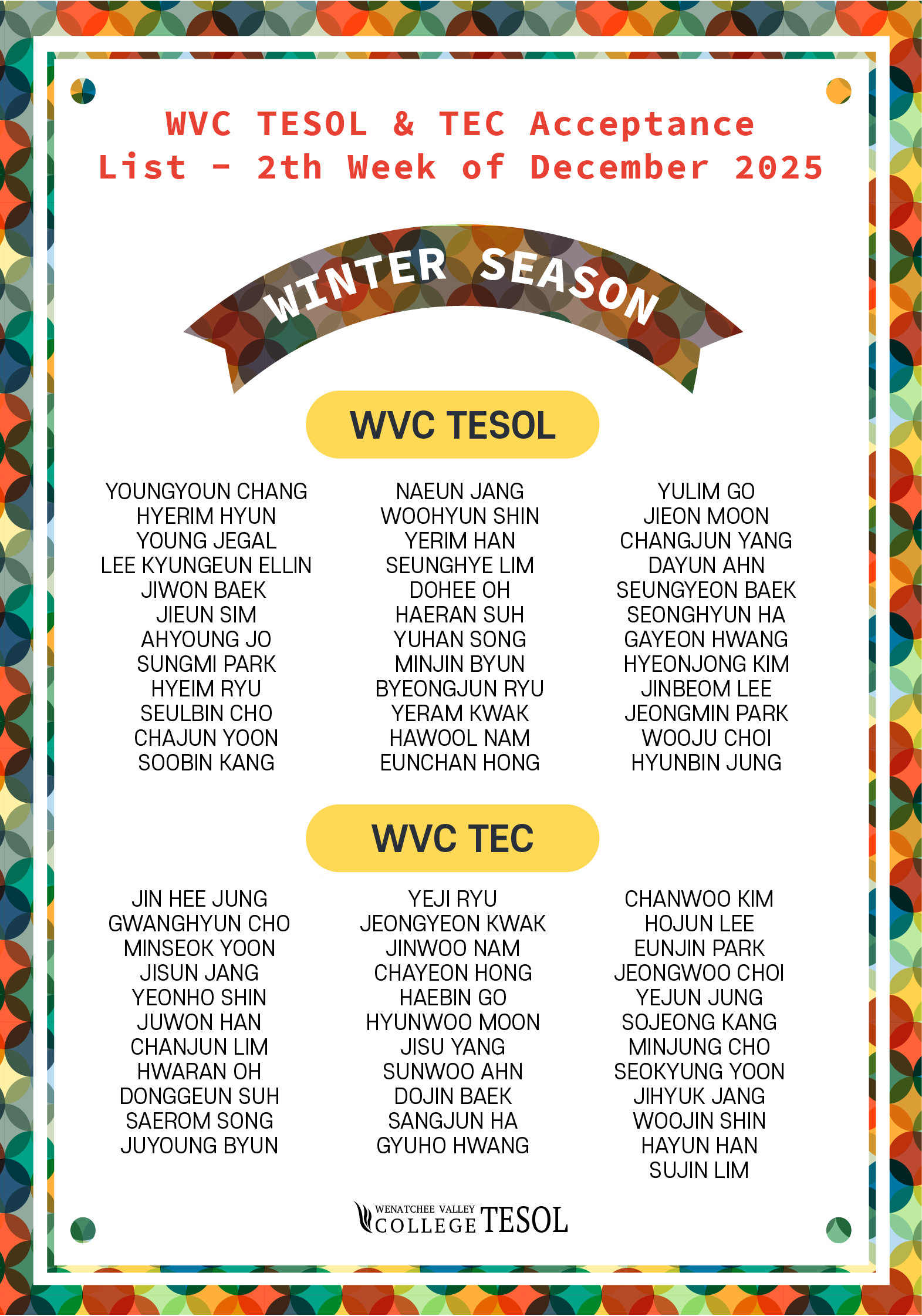 [합격생 리스트] 2025년 12월 2주 WVC TESOL & TEC |
