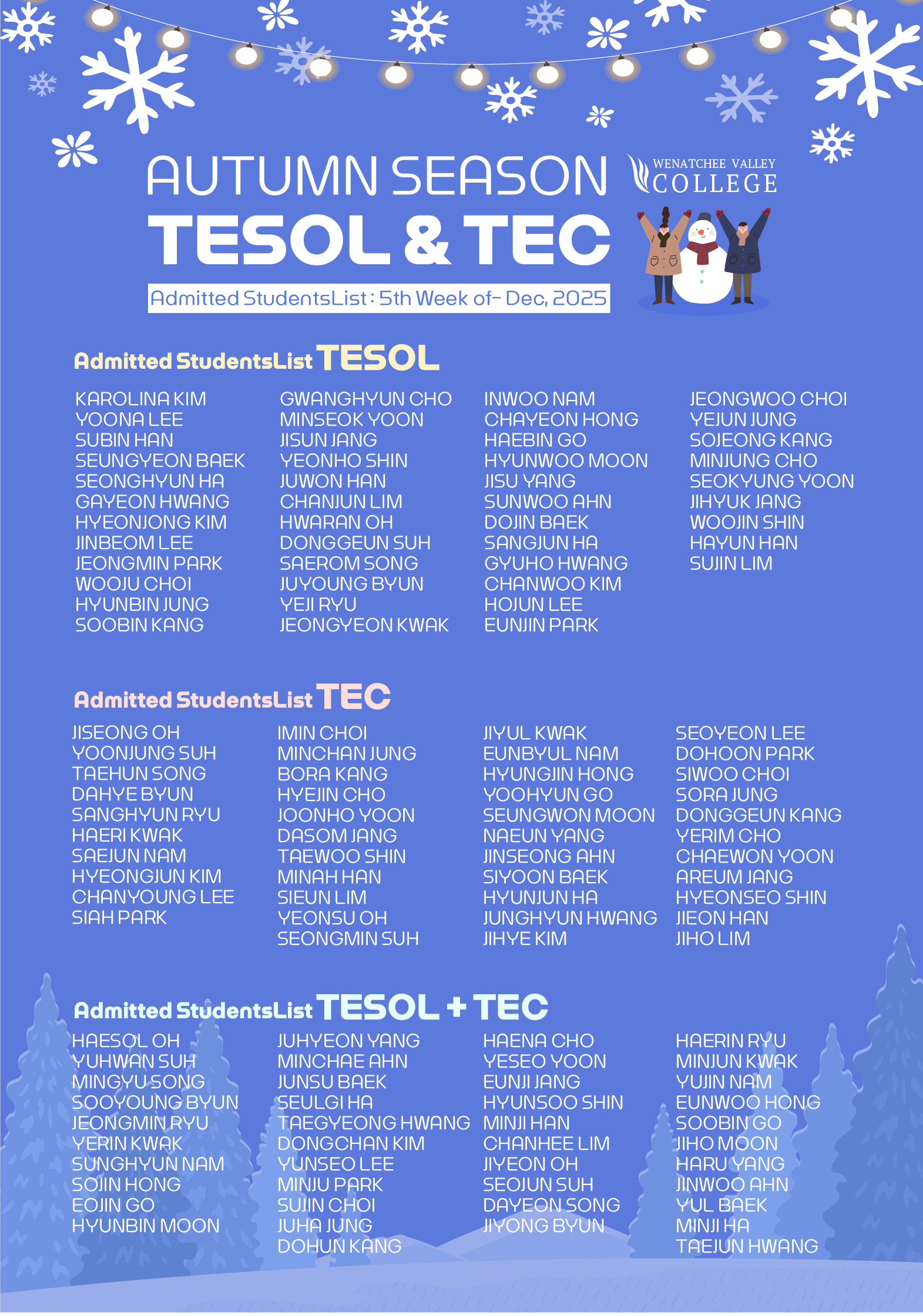 [입학생 리스트] 2025년 12월 5주 WVC TESOL & TEC |