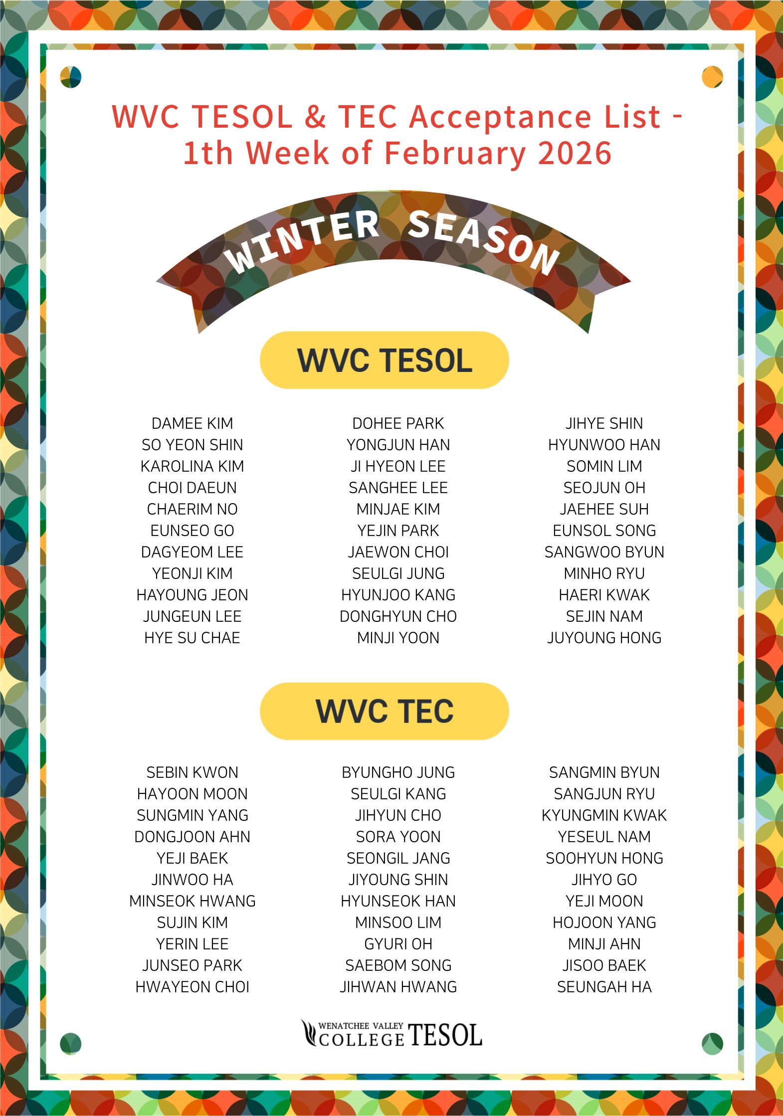 [합격생 리스트] 2026년 2월 1주 WVC TESOL & TEC |