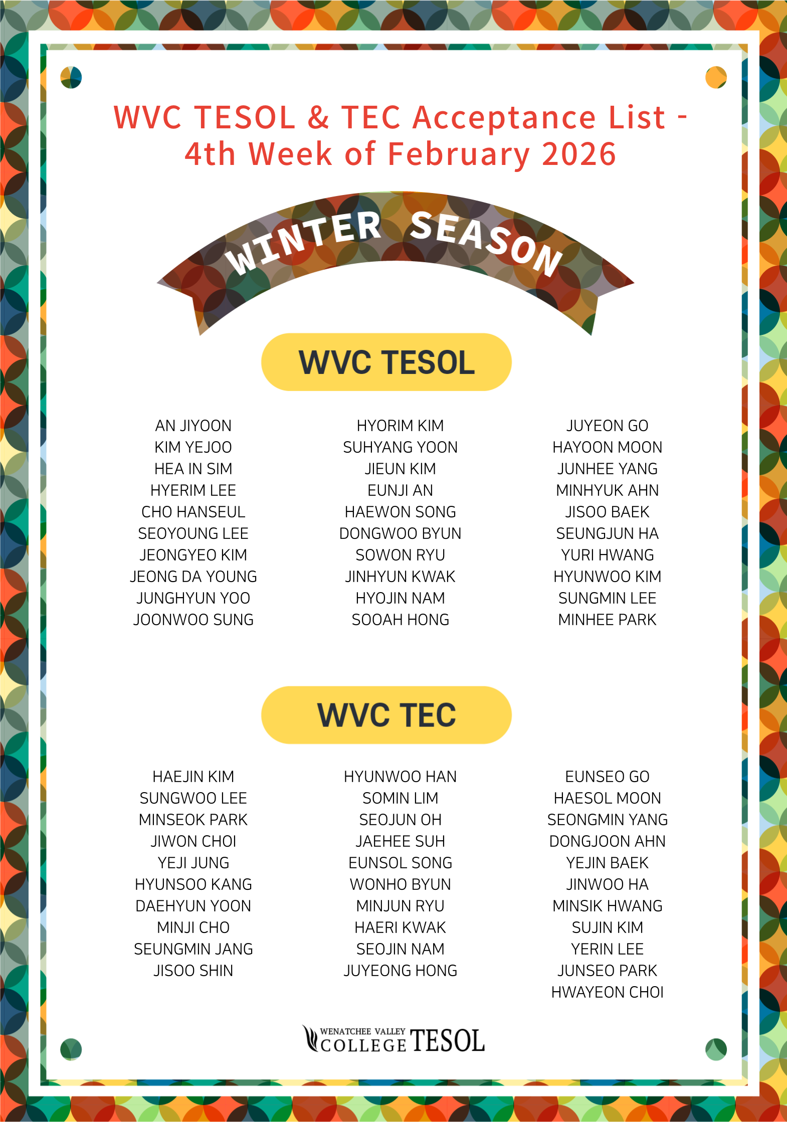 [합격생 리스트] 2026년 2월 4주 WVC TESOL & TEC |