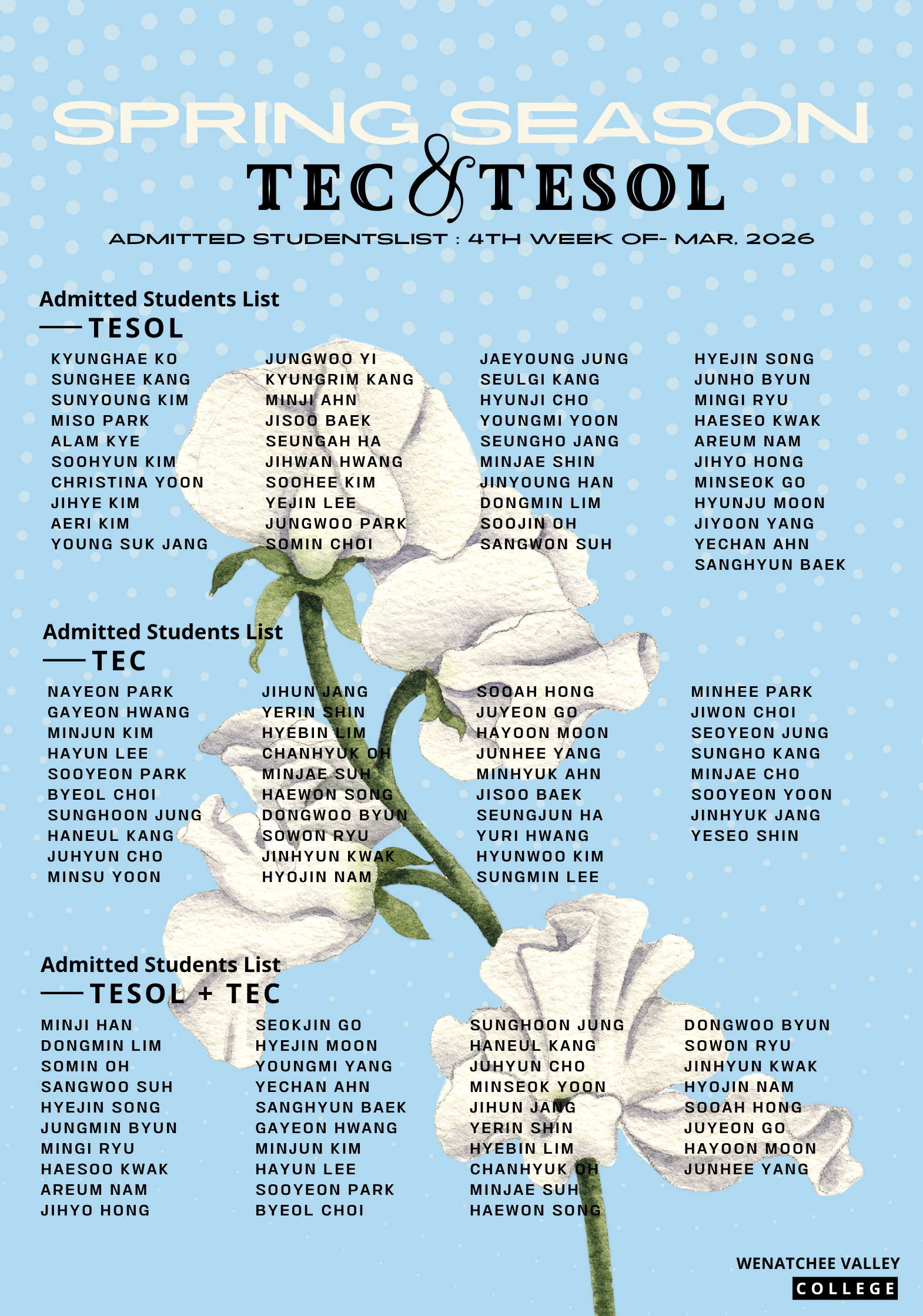 [입학생 리스트] 2026년 3월 4주 WVC TESOL / TEC |