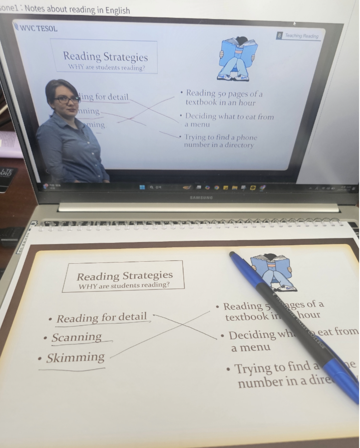 영어강사 자격증 TESOL을 취득하기위해 WVC 온라인 테솔을 수강하고 있다. 요즘 매일 대략 2개 유닛을 완강하고 있는데, 실제 강의 현장에서 쓸 수 있는 중요하고 핵심적인 내용을 강의에서 다뤄주고, 참고용인 부교재로 복습을하면 완전히 내것이 되는 학습이 가능한 장점이 있다. 개인적으로 강의와 교재가 딱 맞아 떨어지는 걸 좋아하는데, 너무나 내 취향대로 구성되어 있어서 강의 들으며 필기하며 진도나가는 재미가 쏠쏠하다. 오랜만에 공부를 재미있게 해보고 있는것 같아 뿌듯하다. 이번 포스팅은 UNIT 5~8을 수강한 후기를 기록으로 남겨보려한다. 벌써 진도가 2/3 완성이 되었는데, 그동안 내가 학습한 내용의 핵심적인 내용들 까먹지 않도록(!) 잘 정리해 두고 싶다. 나처럼 영어강사 자격증 취득을 위해 온라인테솔을 알아보고 있는 분들이 있다면 도움이 되면 좋겠다. 여러 테솔 비교하고 고민해본 그 맘 내가 아니까... UNIT 5: Classroom Management 1. Topics in this Unit 2. Transitions 3. Q&A UNIT 5에서는 실제 교실에서 어떤 방식으로 진행해야 하는지에 대한 실용적인 방법을 다룬다. 학생들마다의 다른 학습 스타일에 대한 이해, 본수업 전 워밍업하는 방식, 명확한 지도, 활동간 전환하는 방식 등의 실제 적용해야할 티칭방식에 대해 배우게 되는데, 그 중 TTT(Teacher's Talk Time)에 대한 내용이 인상 깊다. 과거의 티칭방식은 too much TTT 였다면, 바람직한 방식은 "more student talk time needed" 교사가 덜 말하고 학생이 더 말하도록 해야한다는 것이다. 학생들의 대답을 진득하게 기다려주는 자세를 갖춰야 하겠다. More Student Talk Time Needed ![]() 1. Topics in this Unit: 교실 관리의 기본 원칙: 수업 시간 동안 안정된 학습 분위기를 유지하기 위한 기술 규칙과 기대치를 설정해 학생의 참여를 유도하는 방법 2. Transitions: 활동 간 전환을 효과적으로 관리하는 방법 수업 흐름을 유지하며 전환을 부드럽게 만드는 전략 ![]() 현장에서의 활용 방안 규칙 설정: 수업 첫날 간단한 수업 규칙을 정해서 학생들과 공유한다. 예를 들어, “손을 들고 질문하자”는 간단한 규칙을 설정해 서로의 발언을 존중하는 분위기를 조성한다. 활동 전환: 타이머나 간단한 시각적 신호를 사용해 활동 간의 전환을 매끄럽게 진행한다. 예를 들어, "3분 후 다음 활동을 시작합니다!"라는 경고를 줌으로써 학생들이 준비할 수 있는 시간을 확보한다. UNIT 6: Assessment 1. Types of Assessment 2. Error Correction 3. Q&A UNIT 6에서는 평가에대한 모든것을 배운다. Asessment 즉, 평가란 왜 해야하는지?, 평가의 종류들, 평가의 팁 들과 실수(mistake)와 오류(error)를 구별하고 예측하여 대비하는것이 중요하다는 내용이었다. MISTAKES ARE AWESOME! 그 중 "실수는 멋진것이야!" 실수를 통해서 배우는것에 대한 중요성을 일깨워주는 문구이다. 실제 수업에서 학생들에게 이 문구를 보여주며 씩씩하게 틀릴수 있는 용기를 북돋워줘야겠다. 1. Types of Assessment: 공식적인 평가(Formal Assessment): 퀴즈, 시험 등 점수를 평가하는 방식 비공식 평가(Informal Assessment): 대화, 관찰, 활동 결과 등을 포함해 학습 과정을 평가 2. Error Correction: 오류 교정 방법과 타이밍의 중요성 즉각적인 교정과 보다 긴밀한 피드백 제공 간의 균형 유지 ![]() 현장에서의 활용 방안 공식·비공식 평가 병행: 퀴즈로 문법이나 어휘를 확인하는 포멀한 평가를 활용하면서도, 수업 중 대화와 발음을 관찰해 학생들의 강점과 약점을 파악하는 비공식 평가를 함께 운영한다. 오류 교정: 학생들이 스피킹 연습 중일 때 지나치게 교정을 하지 말고, 주요 오류를 기록해 수업 말미에 종합적으로 설명해 준다. UNIT 7: Course Design and Lesson Planning 1. Designing your Course 2. Choosing a Textbook 3. Q&A UNIT 7에서는 수업을 계획하고 준비하는 방식에 대한 내용을 다룬다. 내가 진행할 수업의 코스를 체계적으로 기획하고 상황에 맞게 다양한 자료를 적극적으로 활용해야하며, 티칭전략에서는 PPP, ARC, TTT 방식에 대해 배울수 있었다. 전통적인 PPP구조가 아닌, ARC 실제적인 맥락중심과 TTT 시험이아닌 게임처럼 접근이 가능한 티칭전략이 중요함을 알수 있었다. 탄탄한 수업 계획은 학생의 교육 경험을 향상시키는 필수적 요소. 1. Designing your Course: 학습 목표를 설정하고 학생 수준에 맞게 커리큘럼을 구성하는 방법 교재와 활동 설계를 학습자의 필요에 맞춰 조정하는 기술 2. Choosing a Textbook: 목표 및 수준에 따라 올바른 교재를 선택하는 법 교재를 창의적으로 활용하여 수업에 적용하는 방법 ![]() 현장에서의 활용 방안 SMART 학습 목표 설정: "단어 20개 암기하기" 대신, "한 주 동안 과거 시제를 활용해 3문장을 만들 수 있게 도와주기"처럼 구체적이고 측정 가능한 목표를 세워 수업을 설계한다. 보완 수업 자료 활용: 선택한 교재 외에도 실생활에서 접할 수 있는 뉴스 기사, 노래 가사 등 흥미로운 자료를 추가로 제공해 학습 효과를 극대화한다. UNIT 8: Teaching Reading 1. Notes about reading in English 2. Extensive Reading 3. Q&A UNIT 8에서는 중요한 'Reading'에 대한 내용을 다루는데, 읽기 연습, 읽기 전략 등의 실제 리딩 학습을 잘 할수있도록 강사의 역할이 무엇인지를 알게되었다. 학생의 기초 및 배경지식을 고려해