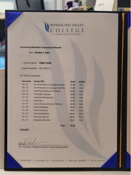 [WVC TESOL 석사] wvc테솔-Teaching English Worldwide레벨테스트,강의커리큘럼이나 학비, 합격을 위한 공부방법 및 팁을 공유해보려고 한다. 위)다운받은 사본 / 아래) 택배로 받은 원본 테솔은 '국제 영어교사 양성 과정'으로 대부분 석사 과정은 Practical 한 수업과 연구 중심으로 이루어진다..- 2022.09.07