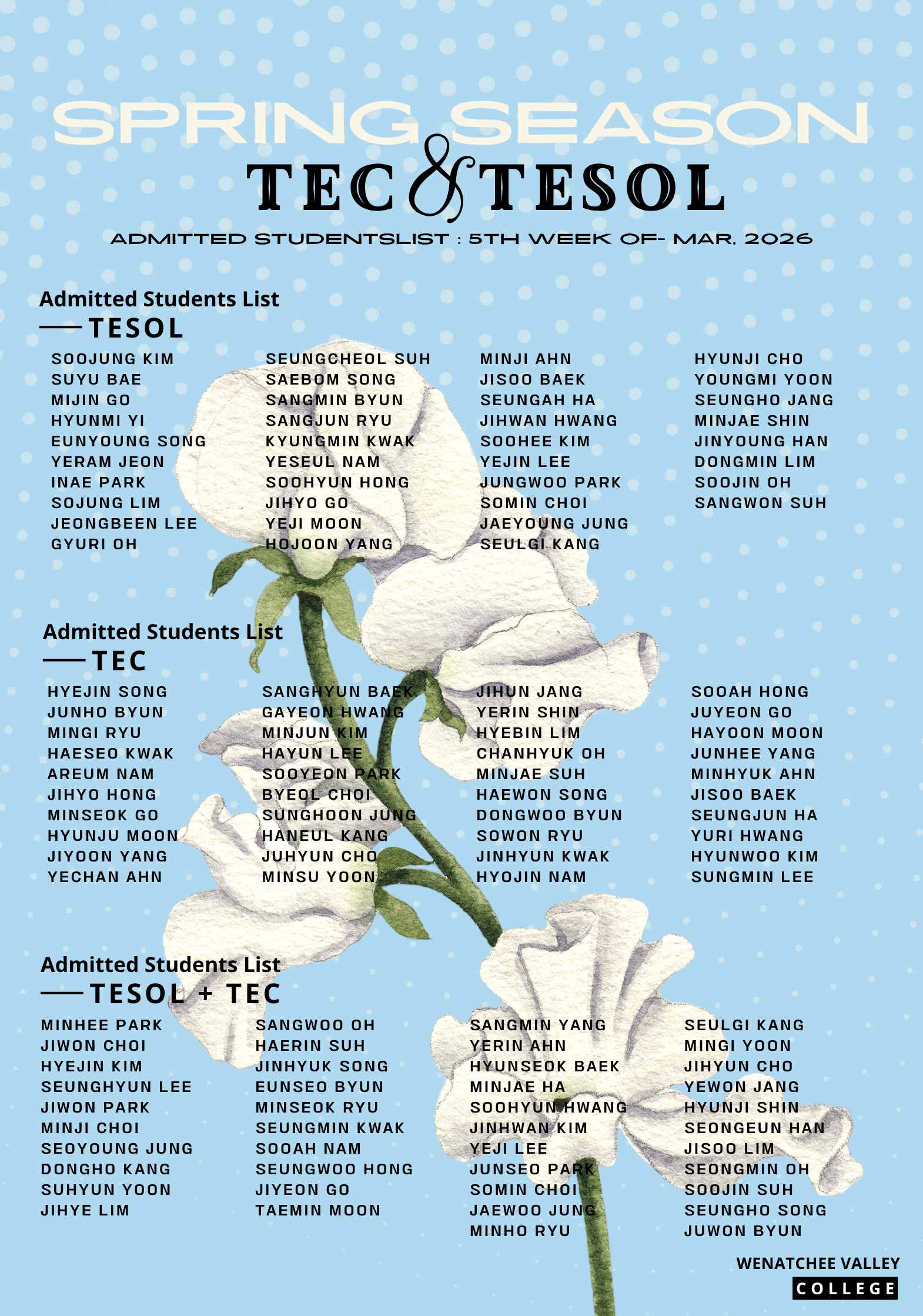 [입학생 리스트] 2026년 3월 5주 WVC TESOL / TEC