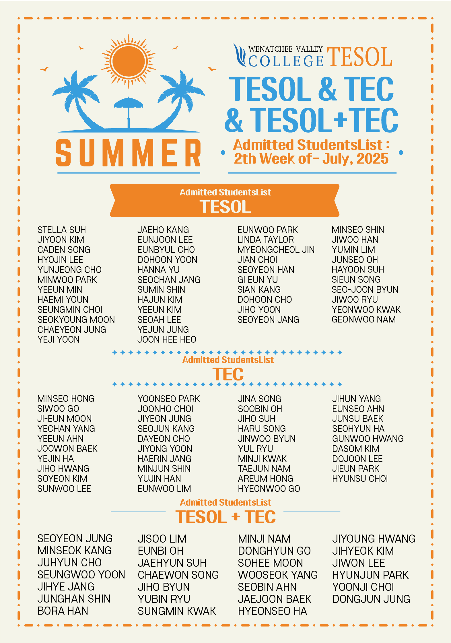 [입학생 리스트] 2025년 7월 2주 WVC TESOL & TEC |