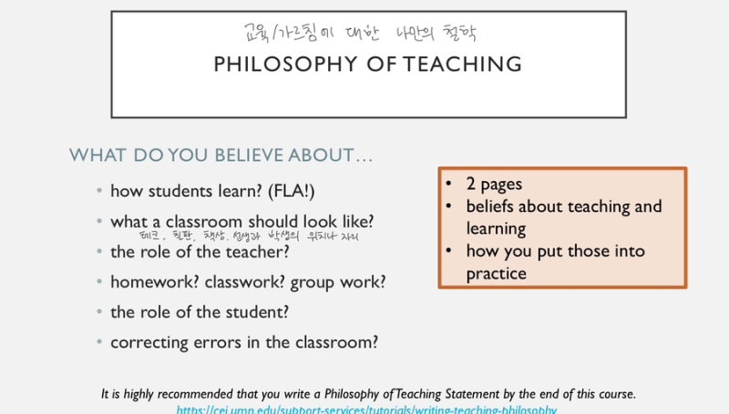 교육에 대한 나만의 가치관을 2페이지로 정리해보는 행위이다.
