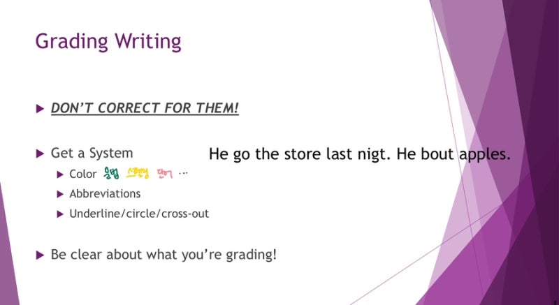 가장 중요한 것은 학생을 위해 문장 전체를 올바르게 고쳐서 써주지 말 것.