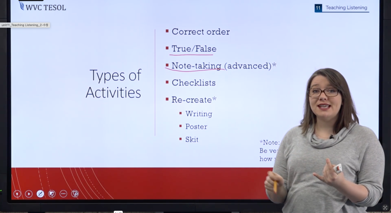 위 사진에 Listening을 가르칠 때 중요한 지점들이